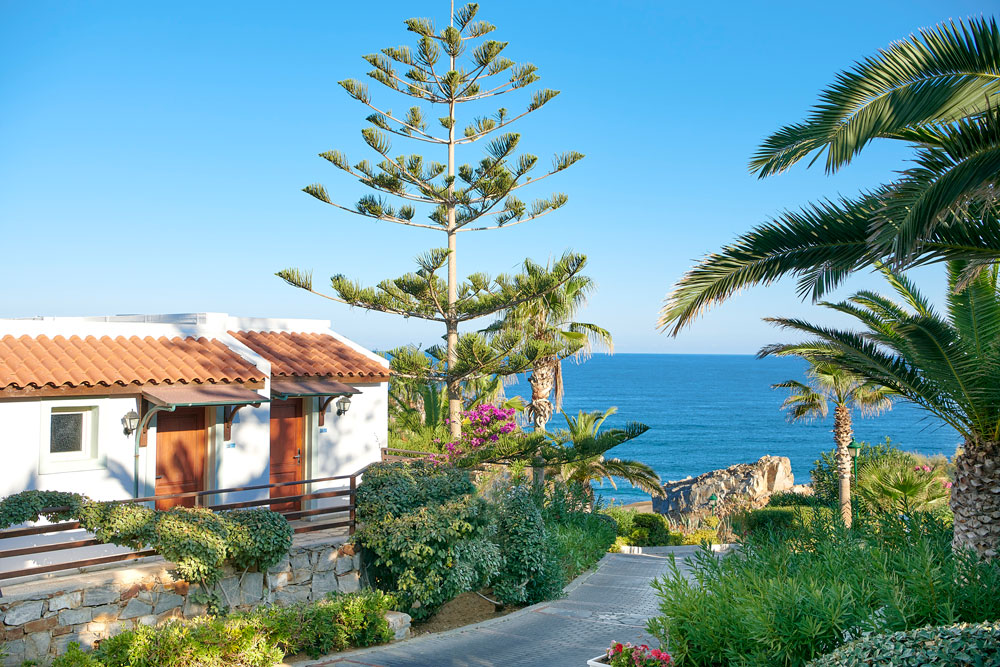 Das Resort bietet geräumige Zimmer mit herrlichem Garten- und Meerblick. Alle Gästezimmer und Bungalows sind modern eingerichtet und laden dazu ein, sich in ruhiger Atmosphäre zu entspannen. Eure Kunden können entlang der Küste spazieren oder in den weitläufigen Gärten mit eiheimischer Flora, wie in einem typischen kretischen Fischerdorf.