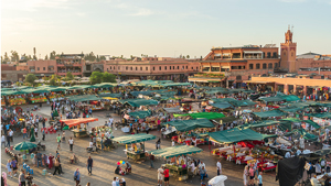 Zum krönenden Abschluss wartet Marrakesch: Lasst eure Kunden das bunte Treiben auf dem Djemaa el-Fna erleben, die Koutoubia-Moschee entdecken, durch das Gewürzviertel schlendern und die Farbenpracht des Majorelle-Gartens (inklusive im Premium Paket) genießen.